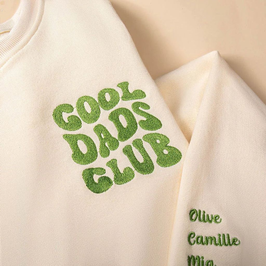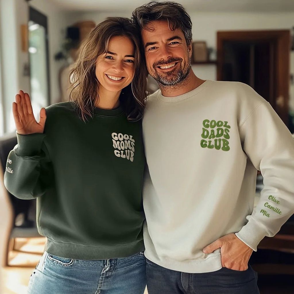 This sweatshirt showcases a stylish and eye-catching design available in eight vibrant colorways. Adorned with the embroidered phrase "Cool Mom/Dad Club" across the chest, it also offers the unique option to customize with your child's name on the sleeve. This personalization transforms each piece into a cherished keepsake that beautifully reflects your unique family connection.